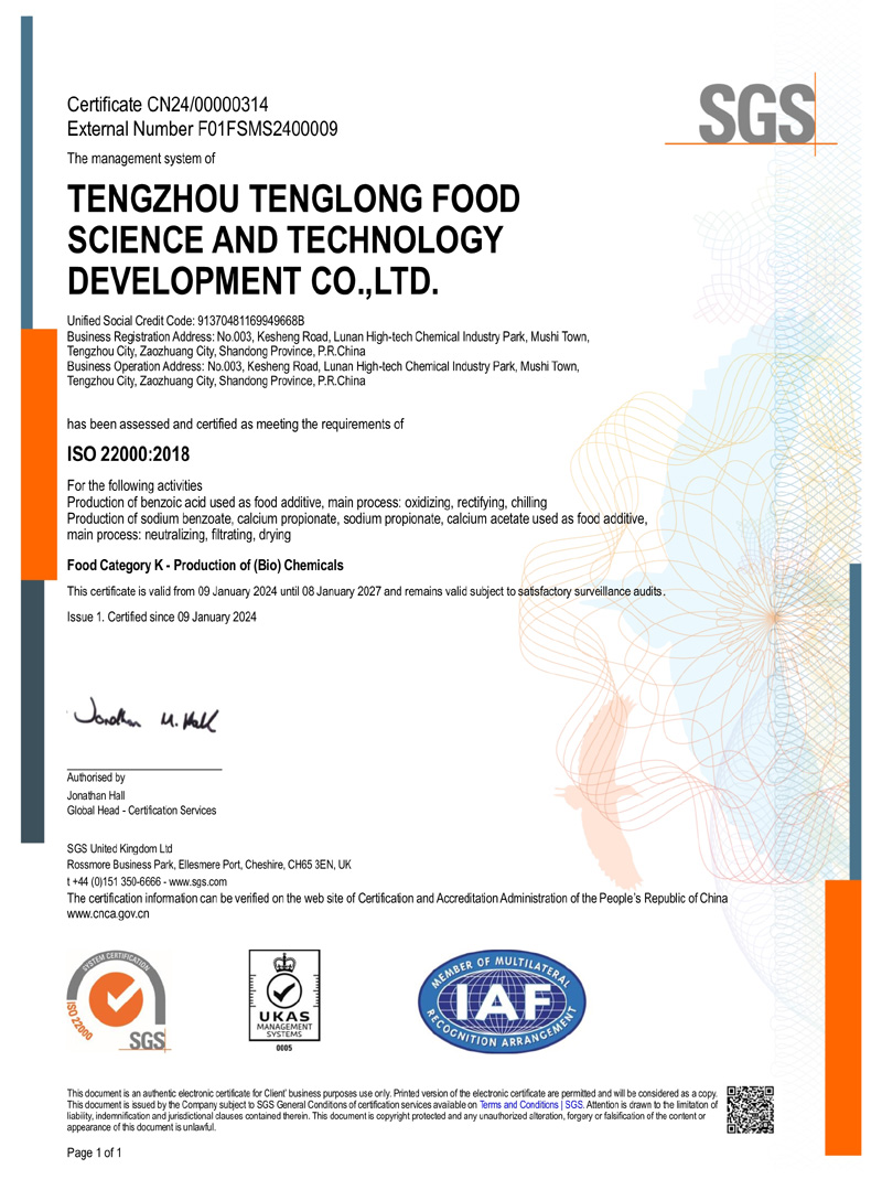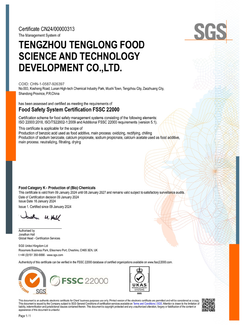滕州市騰龍食品科技發(fā)展有限公司坐落在山東省滕州市木石鎮(zhèn)魯南高科技化工園區(qū),成立于1996年,前身是滕州市騰龍化工有限責任公司,公司專業(yè)生產 苯甲酸,苯甲酸鈉,丙酸鈣,丙酸鈉和醋酸鈣等系列產品。